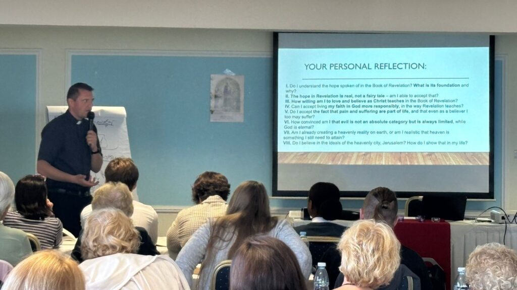 Subotnje jutro započelo je Jutarnjom molitvom i predavanjem vlč. Benakovića na temu „Evo, sve činim novo“ iz Knjige Otkrivenja, u kojem je istaknuo Božju vjernost i stalan poziv na obraćenje i povjerenje. Slijedilo je vrijeme sabranosti i sakrament pomirenja. U nastavku dana sudionicima je približena Lectio Divina, osobito kroz prispodobu o nemilosrdnom dužniku, uz naglasak na važnost oprosta i otvorenosti Božjoj riječi.