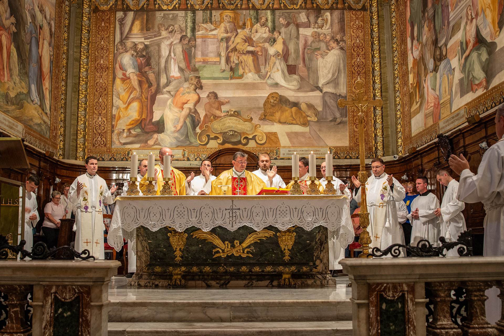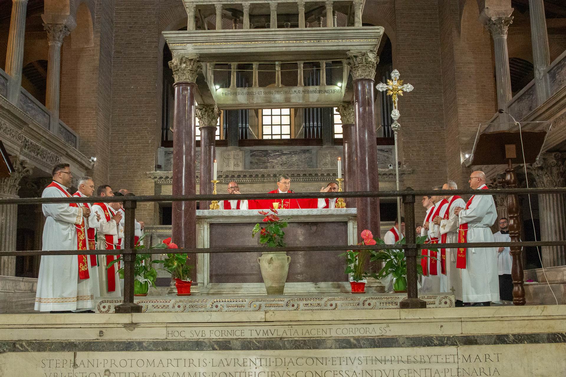 Na početku mise biskup je izrazio radost što se nalaze u Rimu, „sjedištu Katoličke Crkve i srcu naše vjere“. Podsjetio je da je bazilika sv. Lovre jedna od pet najvažnijih rimskih bazilika, te govorio o povijesti te građevine i štovanju svetog Lovre koji je već u 5. stoljeću bio jedan od najomiljenijih rimskih svetaca.