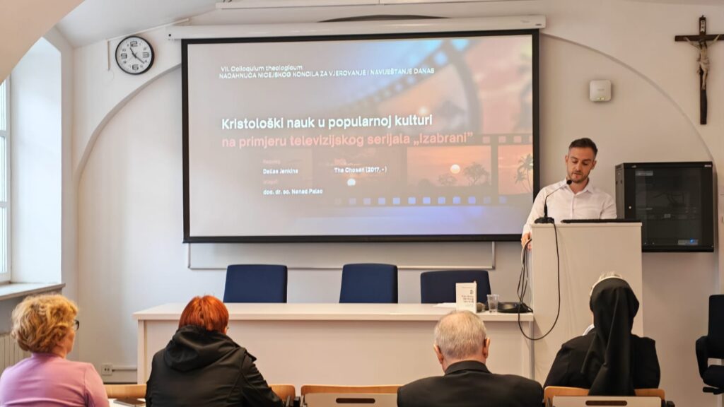 Doc. dr. sc. Nenad Palac s Katedre religijske pedagogije i katehetike Katoličkog bogoslovnog fakulteta Sveučilišta u Splitu aktualizirao je sadržaj Nicejskog vjerovanja kroz temu „Kristološki nauk u popularnoj kulturi – na primjeru televizijskog serijala Izabrani“ redatelja Dallasa Jenkinsa, koji se prikazuje od 2017., a do sada ga je pogledalo 280 milijuna gledatelja iz 175 zemalja te je preveden na više od 75 jezika svijeta. Serijal, financiran velikim dijelom sredstvima gledatelja, stavlja naglasak na Isusovo čovještvo i zamišljanje Isusa i njegovih učenika u današnjim situacijama, promatranim iz kuta američke kulture, što ujedno predstavlja i ograničenje serijala. Predavač je analizirao prve četiri sezone koje se sastoje od 32 epizode serijala „Izabrani“ metodom kvalitativne analiza sadržaja pri čemu se usredotočio na dva tematska okvira prikaza Isusova lika: Isusa kao čovjeka i Isusa kao Boga. U zaključku je istaknuo pozitivne strane serijala kao i njegova ograničenja, na koja treba obratiti pozornost unatoč tome što je serijal u katoličkim krugovima uglavnom dobro prihvaćen. Nakon predavanja uslijedio je rad u skupinama, izvijestili su iz Hrvatske sekcije Europskog društva za katoličku teologiju.