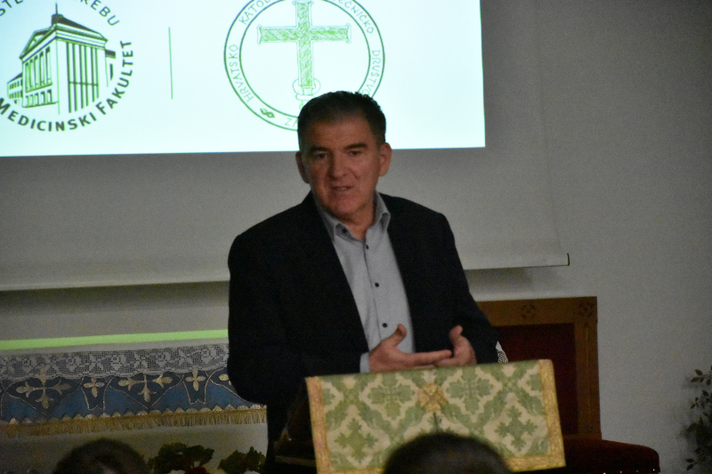 Pri završetku predavanja dr. Čivljak je okupljenima predstavio rad Hrvatskoga katoličkog liječničkog društva, naglasivši kako se u toj zajednici nastoji živjeti povezanost vjere, struke i služenja čovjeku.