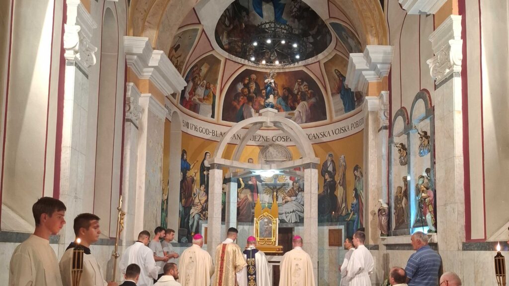Umirovljeni požeški biskup Antun Škvorčević predvodio je u subotu, 4. kolovoza, misu u svetištu u Petrovaradinu, uoči blagdana Gospe Snježne, pozvavši vjernike da u vjeri i Marijinu zagovoru pronađu snagu za suočavanje s izazovima suvremenoga svijeta i izgradnju mira.