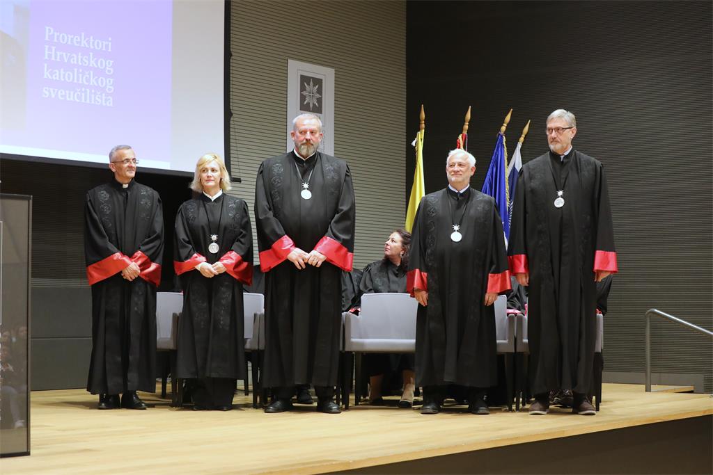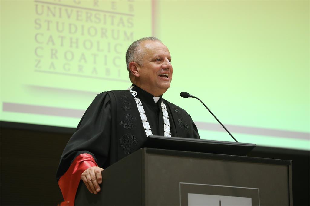 Pozdravni govor okupljenima uputio je i rektor HKS-a preč. Željko Tanjić poručivši novim studentima kako spoj tri dimenzije – hrvatsko, katoličko i sveučilište – čini jedan identitet Hrvatskog katoličkog sveučilišta te “da ono na temelju svojeg kršćanskog nadahnuća svojim postojanjem i djelovanjem ukazuje na prisutnost duhovnog trenutka u činu istraživanja, spoznavanja i stjecanja znanja.” Preč. Tanjić zaželio je dobrodošlicu novim studentima, ali i onima koji su ove akademske godine odlučili studirati na Sveučilištu putem Erasmus+ programa razmjene.