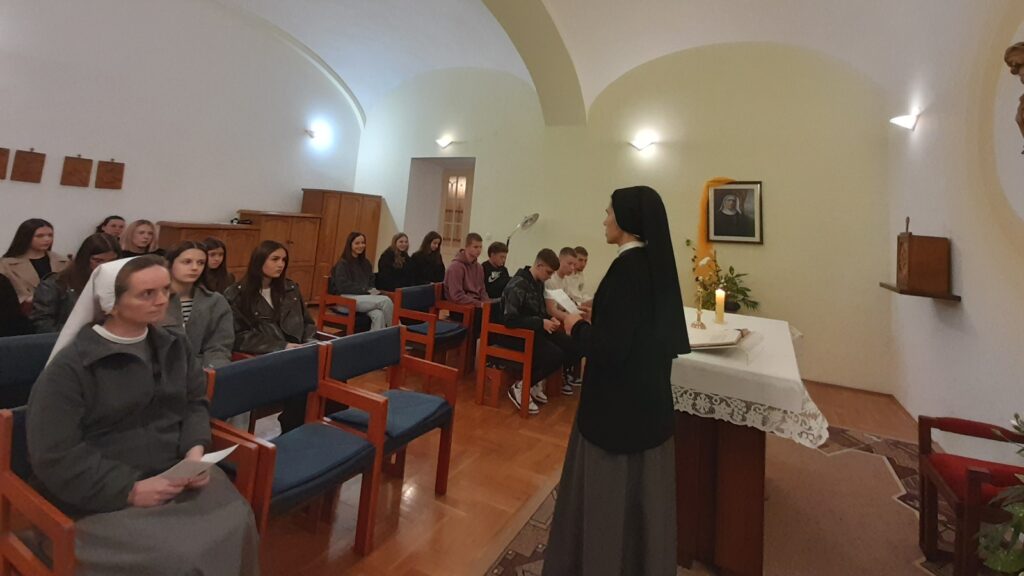 S. Meri Gotovac govorila je posjetiteljima u kapeli o liku bl. majke Marije Terezije i njezinim zagovorima. Uvela ih je u osobnu molitvu i preporuku njezinu zagovoru. Molitvu u čast bl. majci Tereziji predvodile su kandidatice ili njihovi vjeroučitelji: prof. s. Gabrijela Tea Damjanović, prof. Nataša Šantić, prof. Dario Kustura, prof. Mihaela Kelbas i prof. s. Matea Čelik.