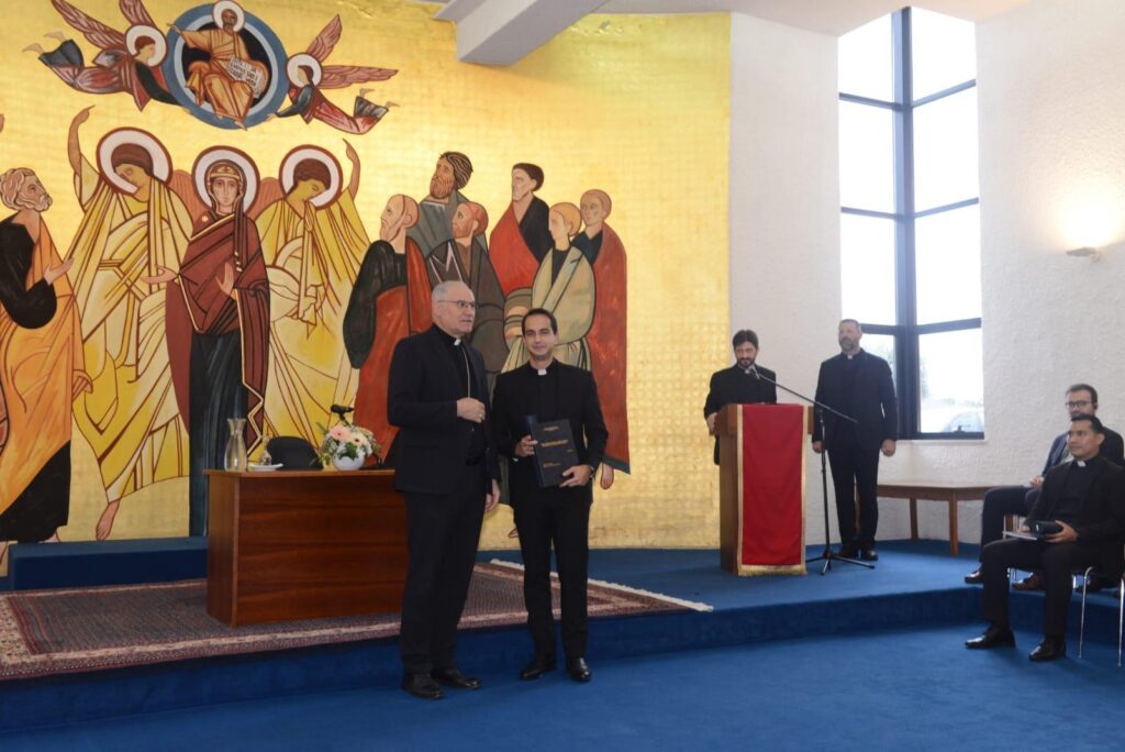 Nakon riječi pozdrava, biskup Štironja uručio je diplome dvojici diplomanata koji su dovršili filozofsko-teološki studij protekle godine. Diplomu su primili Cesar Augusto Madrigal Guavito, koji je svoj studij zaključio diplomskim radom o temi „Kreposti očinstva svetoga Josipa i njihova važnost u obiteljskom životu i u životu posvećenih osoba u svjetlu crkvenog učiteljstva“ pod vodstvom mentora Alejandra Castilla Jiméneza, te Ivan Petrašić o temi „Eshatološka dimenzija Crkve u svjetlu učiteljstva II. vatikanskog koncila“, pod vodstvom mentora Joela Ernesta Catarya Lopeza.