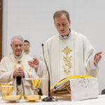 U koncelebraciji je bilo sedam svećenika predvođenih župnikom don Ivanom Đonlićem te prvim župnikom don Vladom Strikićem.
