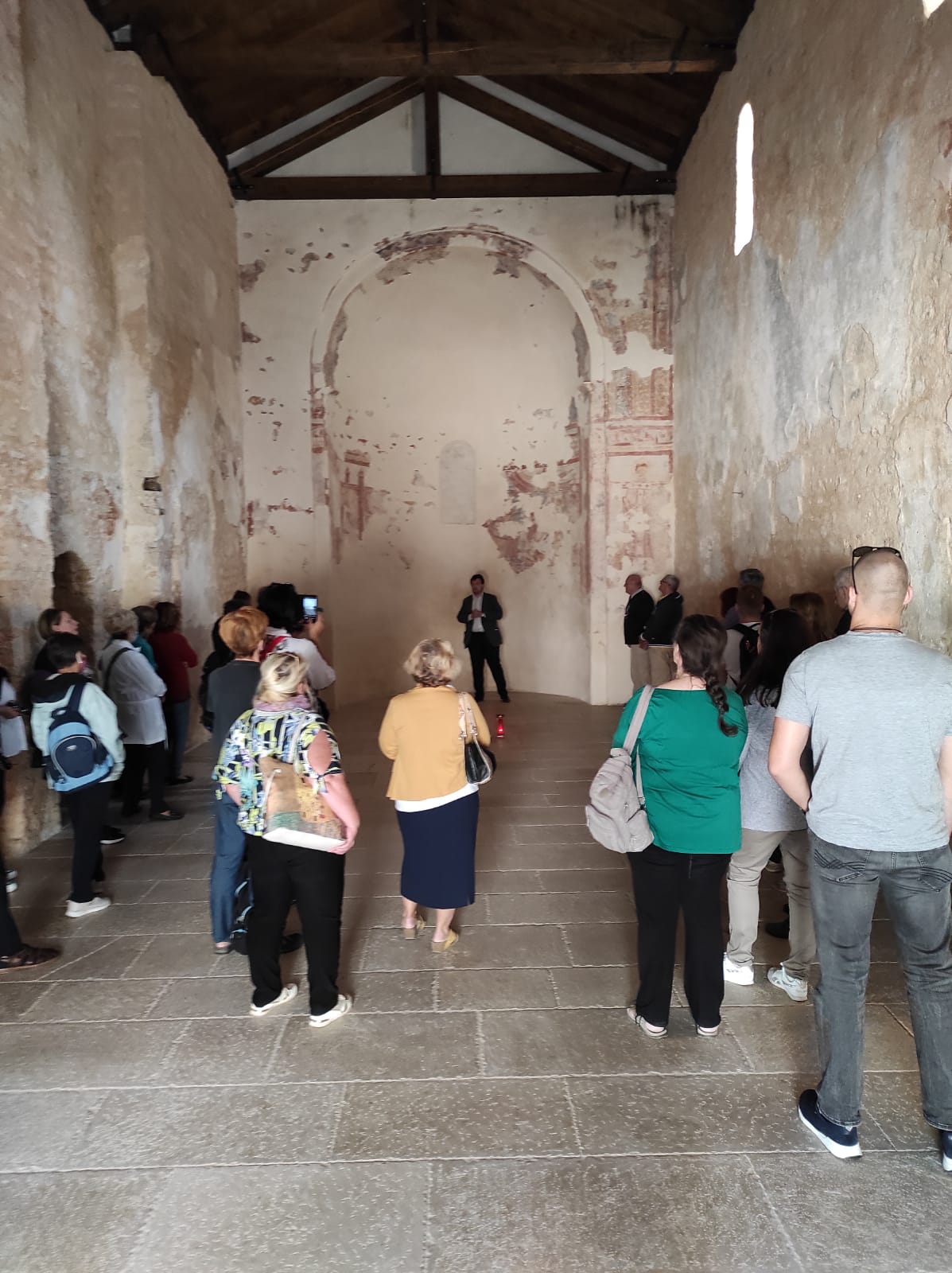 U nastavku je predavač izložio značajke crkve sv. Mihovila koja je građena u romaničkom slogu, i prema nekim povijesnim izvorima posvećena je 1040. godine. Posvetio ju je tadašnji porečki biskup Engelmar (Engelman), rodom iz područja okolice Regensburga. Freske koje ona čuva predstavljaju vrijedan primjer otonske umjetnosti u Istri, istaknuo je predavač. Posebno je značajan prizor u prezbiteriju, koji je dobrim dijelom sačuvan, a predstavlja kamenovanje sv. Stjepana prvomučenika. To je najstariji poznati prikaz te teme u likovnoj umjetnosti, rekao je Martinčević, te pojasnio još niz značajki tog vrijednog prikaza fresco slikarstva. Kamaldoljani su u tome samostanu boravili do sredine 13. stoljeća. U 14. stoljeću kroz desetak godina ondje su boravili templari. Krajem toga stoljeća samostan se pripaja kamaldoljanskom Samostanu sv. Mihovila na otoku Muranu, a 1519. godine pripada Samostanu sv. Matije na Muranu. U 15. stoljeću je izgrađen dio koji je služio kao dormitorij. Godine 1772. prestaje biti crkveno vlasništvo, biva laiciziran te postaje vlasništvo obitelji Coletti iz Conegliana u Italiji. Izumiranjem obitelji Coletti, u vrijeme Austrougarske Monarhije, kompleks prelazi u vlasništvo države, biva sjedištem šumarije. Nakon više stotina godina propadanja sada je napokon ovoj crkvi vraćen stari sjaj, zaključio je predavač.
