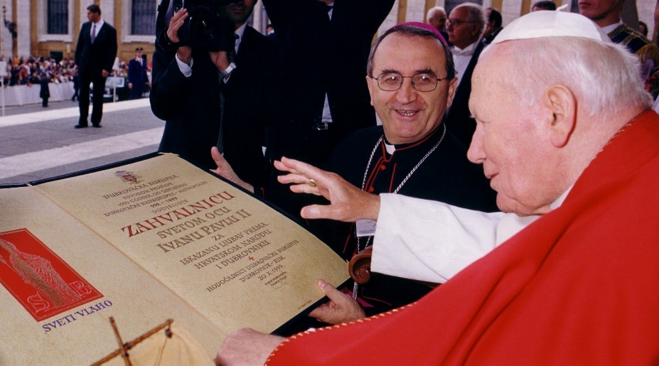 Poznato je da ste još kao dubrovački biskup, a potom i u kasnijim službama unutar Crkve, imali prigodu osobno susretati svetoga papu Ivana Pavla II. Velikog. Koje biste naglaske njegova socijalnog nauka – primjerice iz enciklika „Laborem exercens“, „Sollicitudo rei socialis“ ili „Centesimus annus“ – izdvojili kao osobito nadahnjujuće za Crkvu u Hrvatskoj i šire?