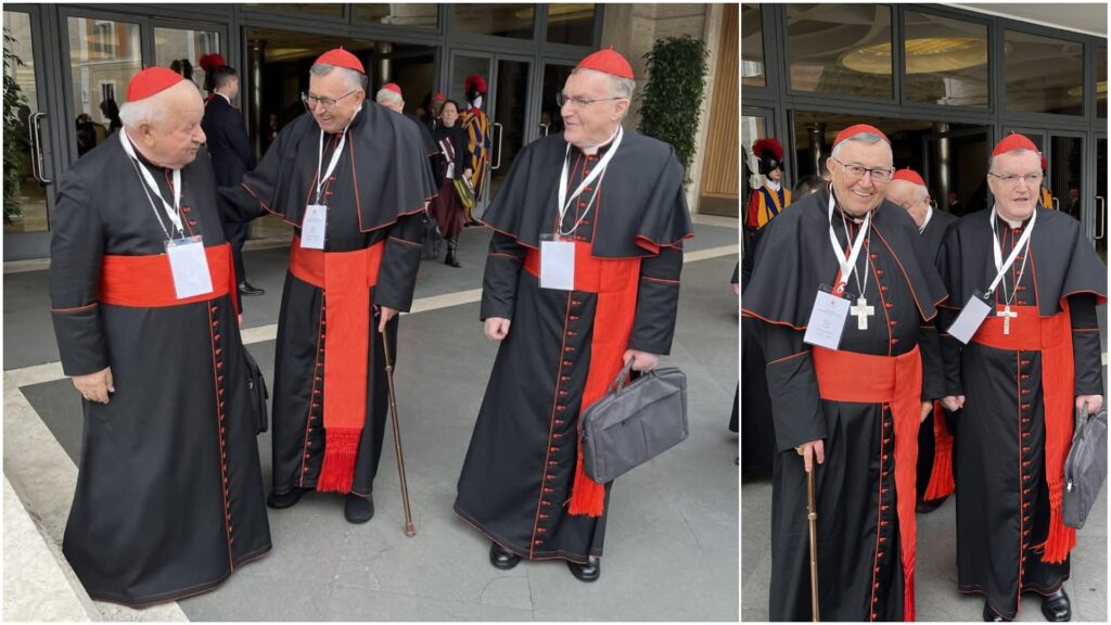 Foto: KTA/TUZN // Poljski kardinal Stanisław Dziwisz i hrvatski kardinali Vinko Puljić i Josip Bozanić prije konklava 2025. godine